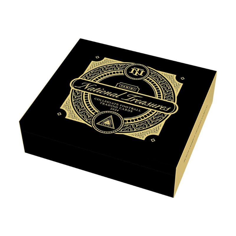 The 2024 Panini National Treasures Collegiate Football Hobby Box offers collectors a premium blend of college football’s most exciting stars, showcasing both current rookies and legendary alumni in stunning high-end design. Each box contains a mix of autographs, memorabilia cards, and on-card signatures, including rare team logo patches, bowl game relics, and low-numbered parallels. With its signature blend of elegance and exclusivity, National Treasures highlights the best of collegiate football through limited-edition cards and exceptional attention to detail. This box is a must-have for fans and collectors seeking valuable pieces of their favorite college players and future NFL stars.