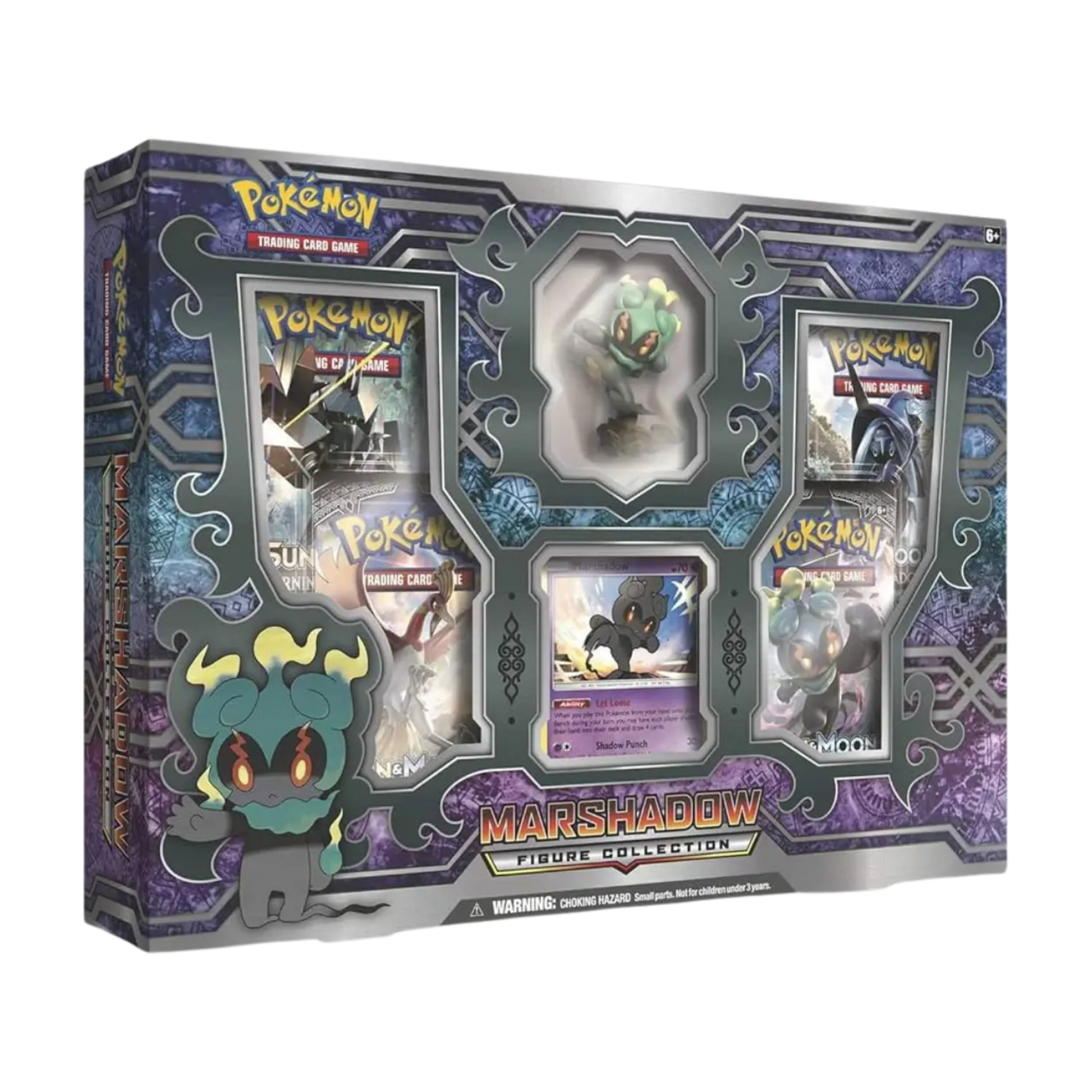 The Pokémon TCG: Marshadow Figure Collection is a sealed and authentic collector's box that brings the mythical Marshadow into your collection with both power and style.