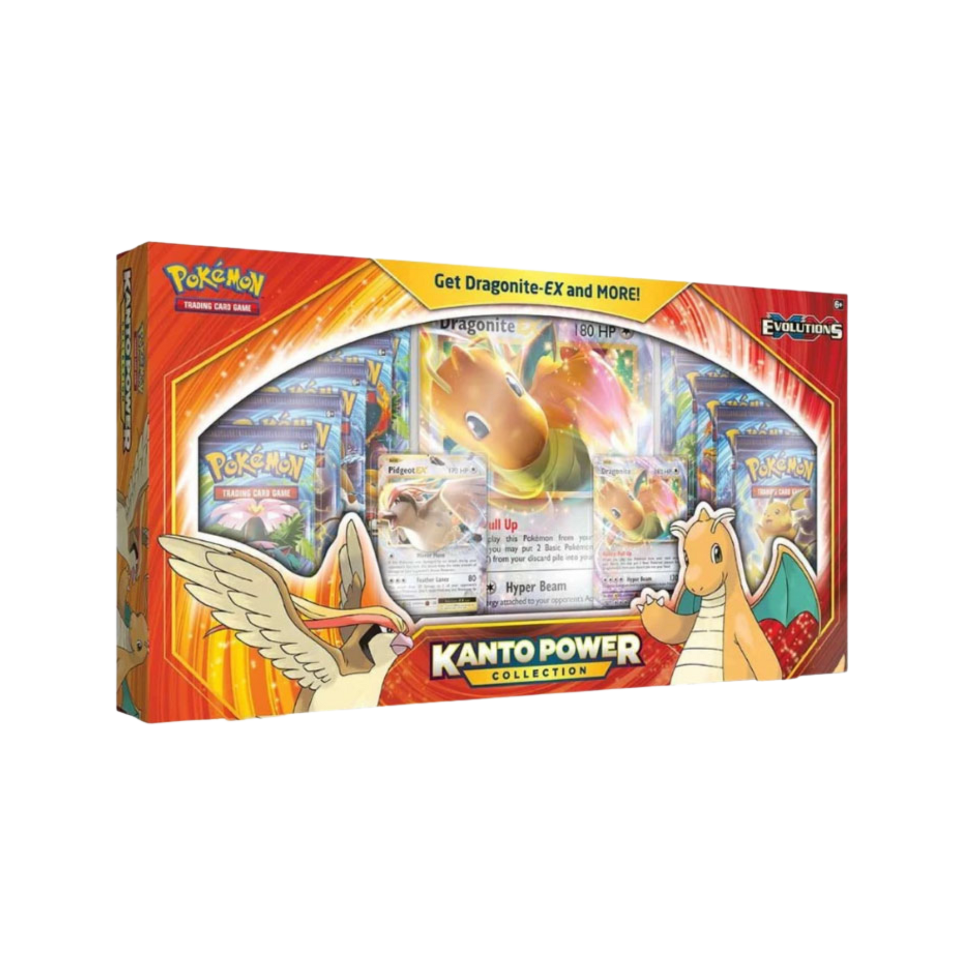 Relive the excitement of the original 151 Pokémon with the Pokémon TCG: XY Kanto Power Collection – Dragonite EX / Pidgeot EX, a sealed and authentic collection box that pays tribute to the Kanto region.